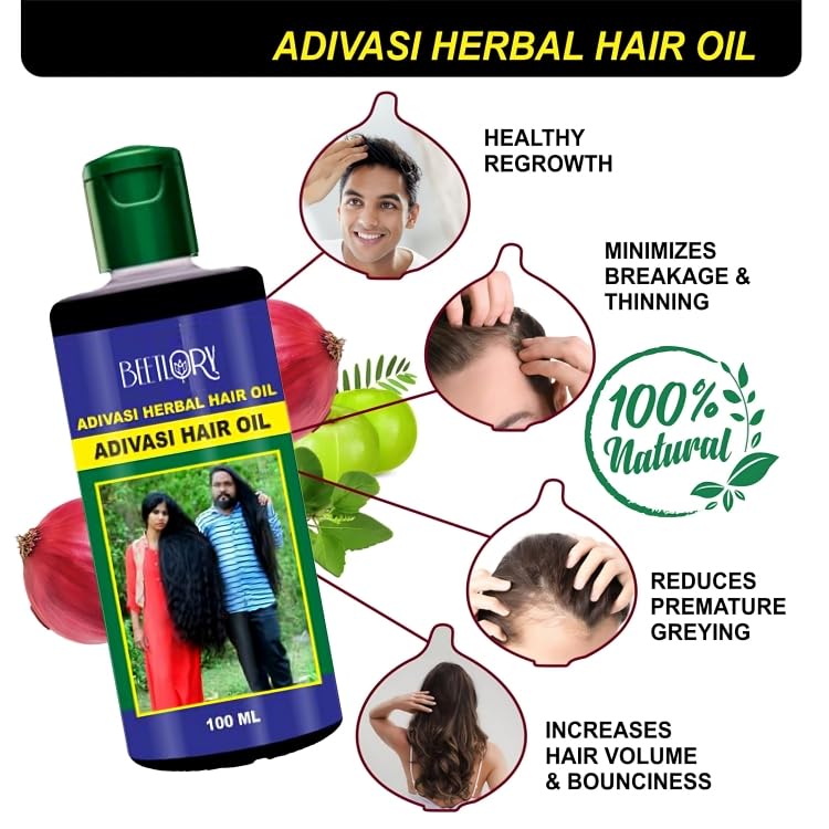 It contains 101 types of pure herbs and roots, for example, Bhringaraj, Brahmi, Amla, Aloe vera, Hibiscus flower, etc. If we talk about the result, we can see the result just in 4 weeks.herbal Hair Oil is purely made from natural herbs available in our forest using ancient methods.