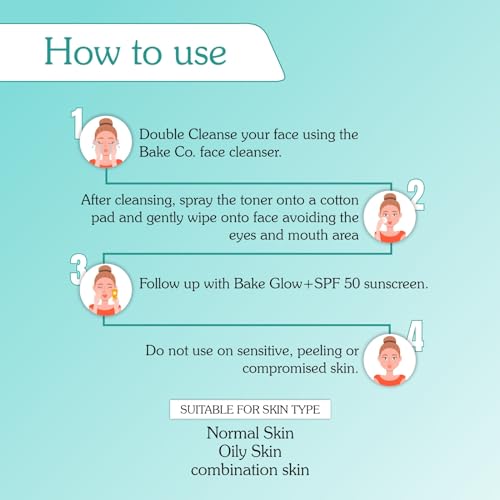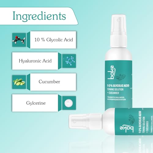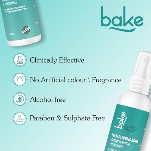 BAKE 10% Glycolic Acid Toner with Hyaluronic Acid | Targets Hyperpigmentation | Pore Tightening Toner for Face & Underarms | For Combination skin, Oily, Acne Prone skin | Alcohol Free Toner | 100ml