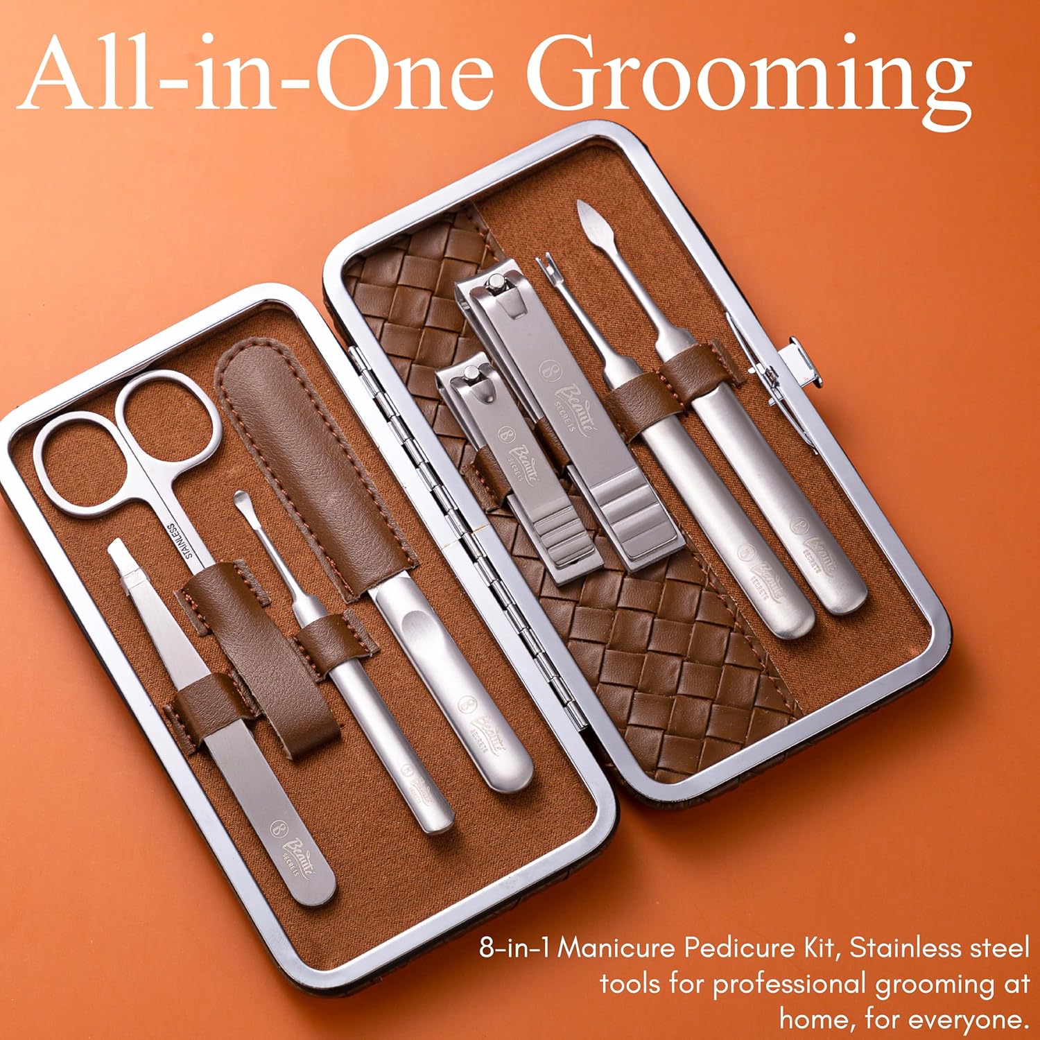 Beauté Secrets Nail Cutter Set – 8-Piece Premium Manicure Pedicure Tool Kit with Plucker for Hair Removal, Nail Clippers, Cuticle Nipper, Ear Cleaning Spoon, V-Shape Push Stick, Hair Plucker for Women