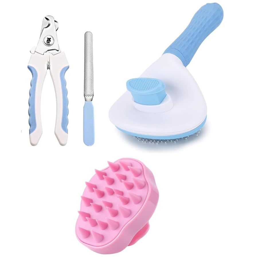 Dog Trust Pet Grooming Combo of Nail Clipper and Slicker Brush for Dogs and Cats | Nail Clipper with Filer and Grooming Slicker Brush Cleaning (Nail Clipper + Oval Push Slicker+Scalp massager)