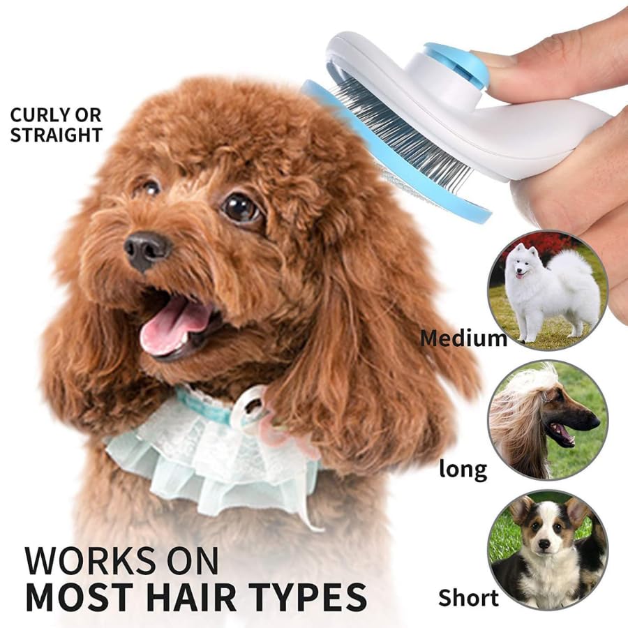 {SLICKER BRUSH}: Quickly grooms cats, dogs, and small animals – wet or dry. The brush teeth of a dog brush for shedding can easily remove the hairs of pets that fall on your sofa or clothes.