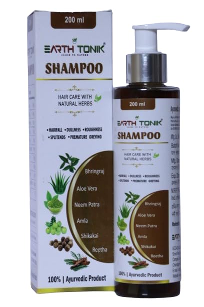 Earth Tonik Ayurvedic shampoo enriched Bhringraj, Neem, Amla, Shikakai known for nourishing and strengthening the hair