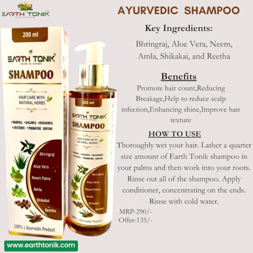 Earth Tonik Shampoo |Ayurvedic Shampoo for Healthy Hair | Suitable for All Hair| 210 ml