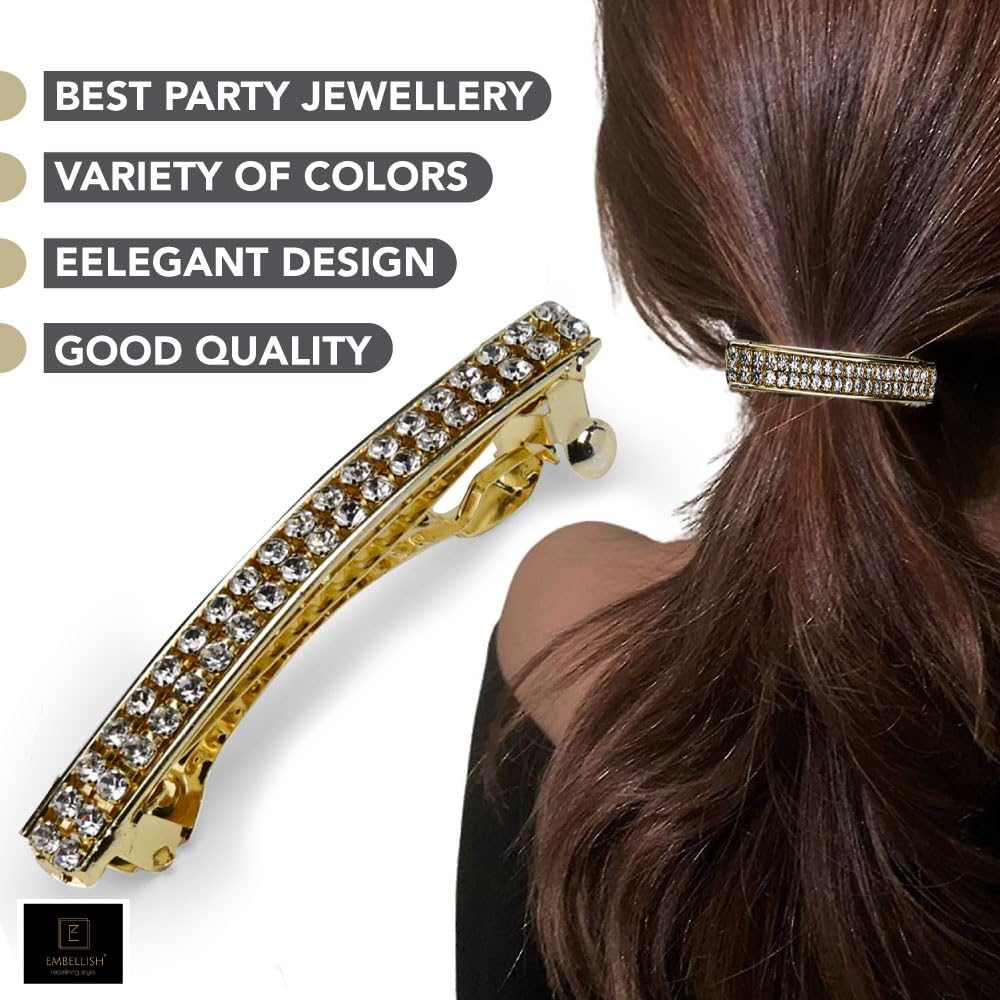 Embellish presents a delightful collection of hair clips designed for women and girls. These elegant barrette hair clips not only serve as practical hair accessories but also add a touch of glamour to your look with their stone embellishments. The set includes three clips, allowing for versatile styling options to match different outfits and occasions.