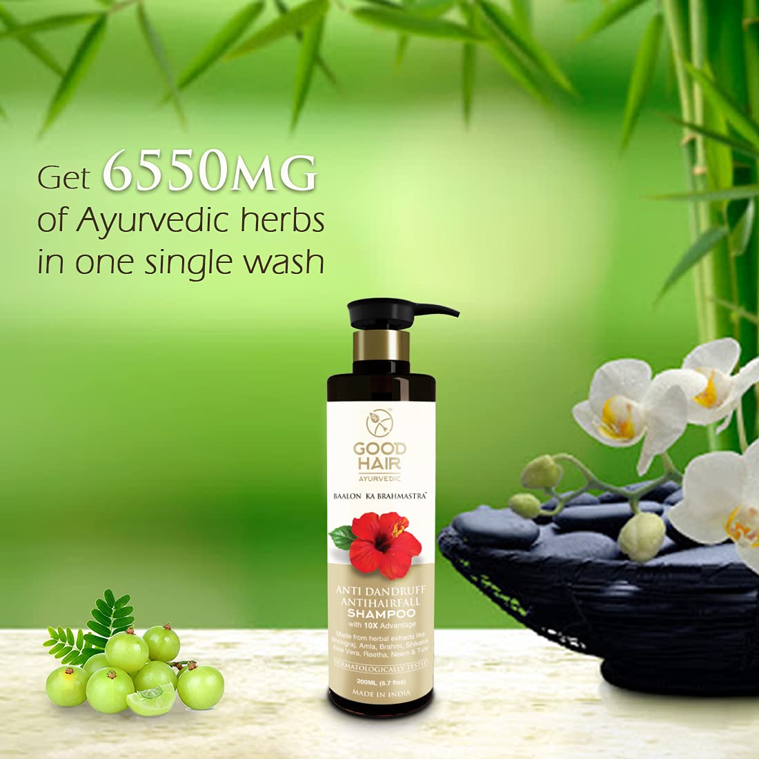Get the strong and Lustrous hair with Good Hair Ayurvedic Hair Shampoo, It is an Ayurvedic Proprietary medicine with 10x advantage of 6550mg of herbs in one single wash. Good Hair Ayurvedic hair Shampoo is packed with Vitamins A, B, C, and E which helps in providing strong and Lustrous hair. This Ayurvedic hair shampoo helps in resolving common hair problems like dandruff, hairfall, Ichty scalp, grey hair, dry hair and Improves hair texture. It also helps in strengthen hair follicles and cleanse the blocked roots.