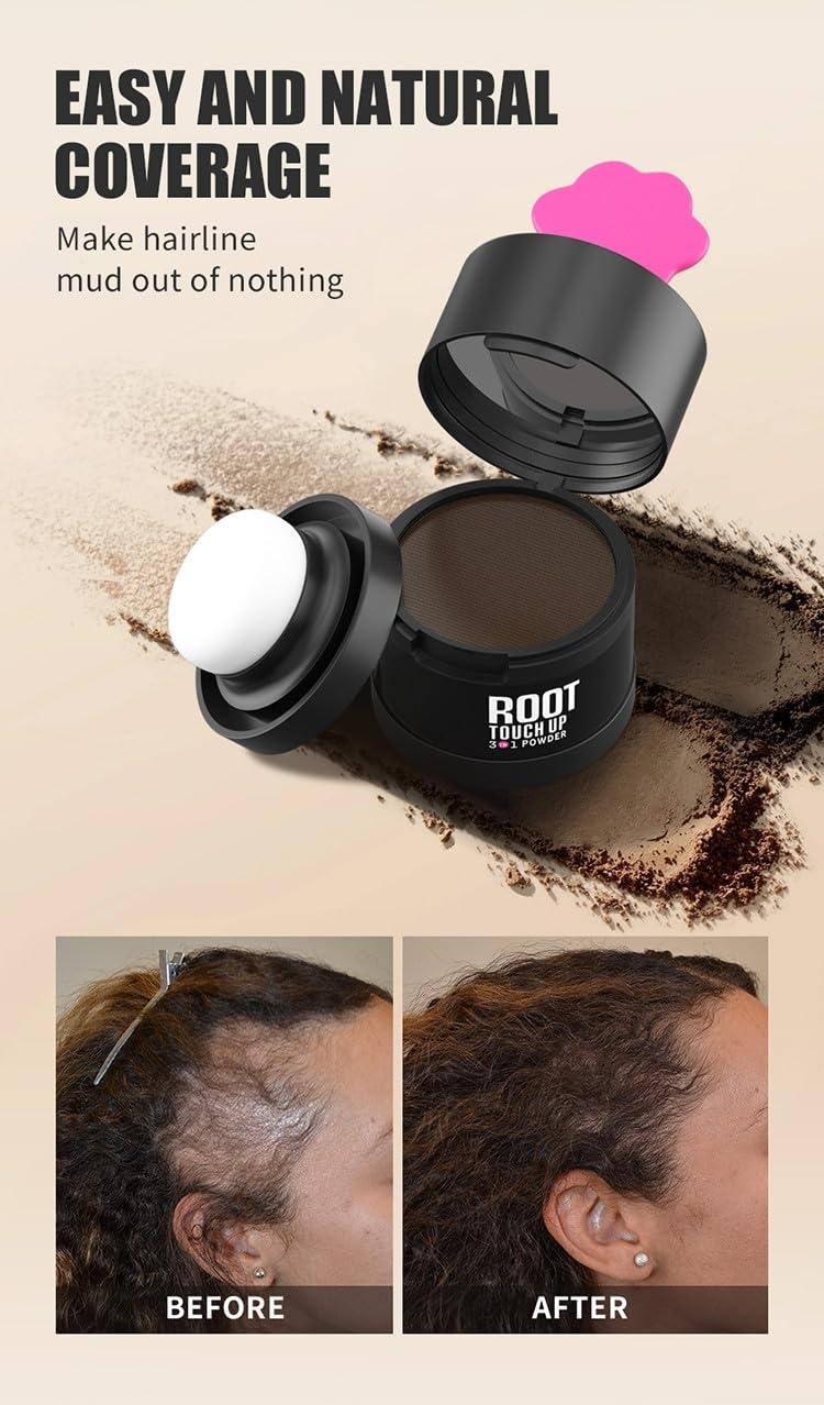 Hairline Powder, hair root cover up. After use, the effect is very significant.It works best between the root of the hair and the scalp. Hair Root Dye instantly Cover Gray Hair, Cruelty-free, The main ingredient is beeswax, Will not damage the nature of hair.