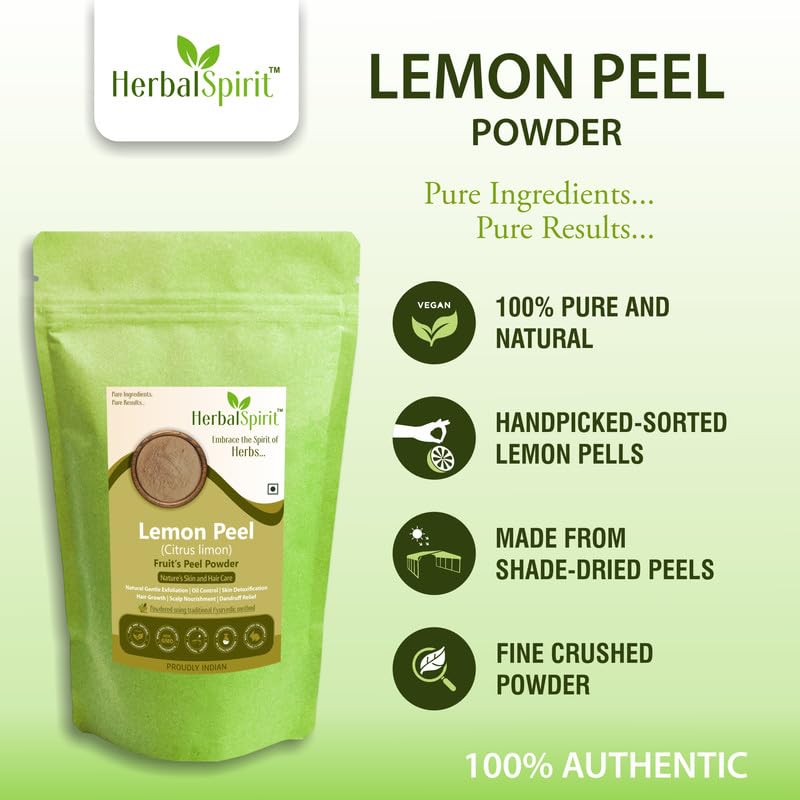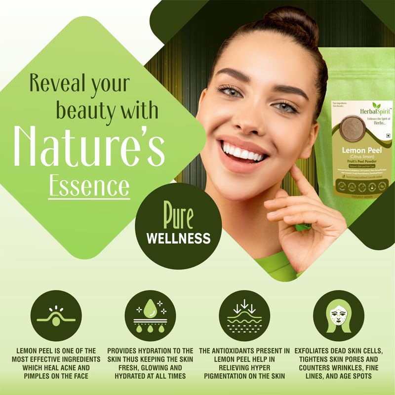 Pure Lemon Peel Powder for Skin: Carefully crafted from the sun-kissed peels of the finest lemons, this finely ground powder encapsulates the zesty aroma and tangy goodness of lemon peels. Lemon peel powder is a natural source of vitamin C, which is essential for collagen synthesis. This can contribute to improved skin elasticity and a more youthful complexion.