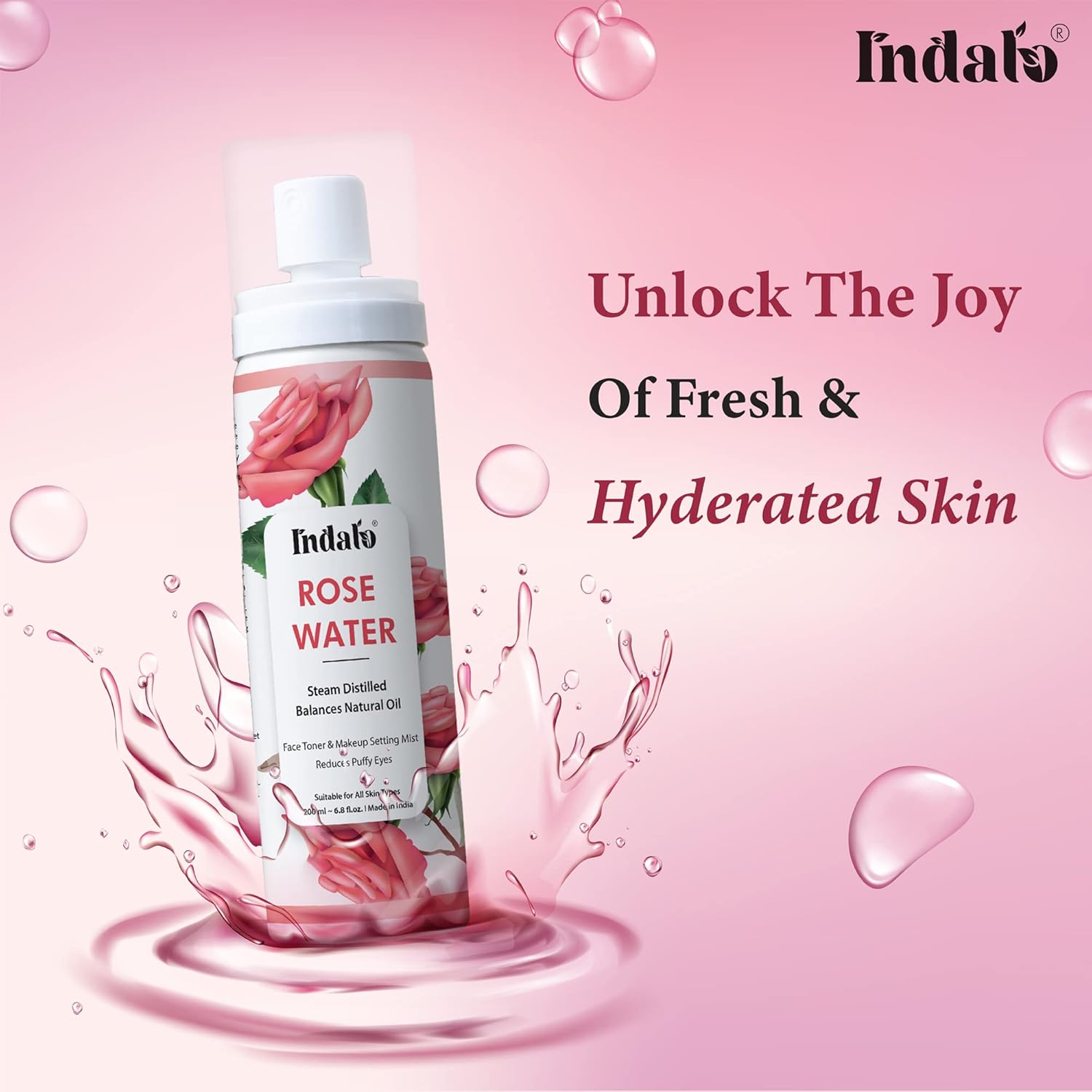 Balances skin’s natural oils: Indalo Rose Water Spray for the face helps balance the natural oils of the skin by hydrating dry skin and controlling the excess production of oil.