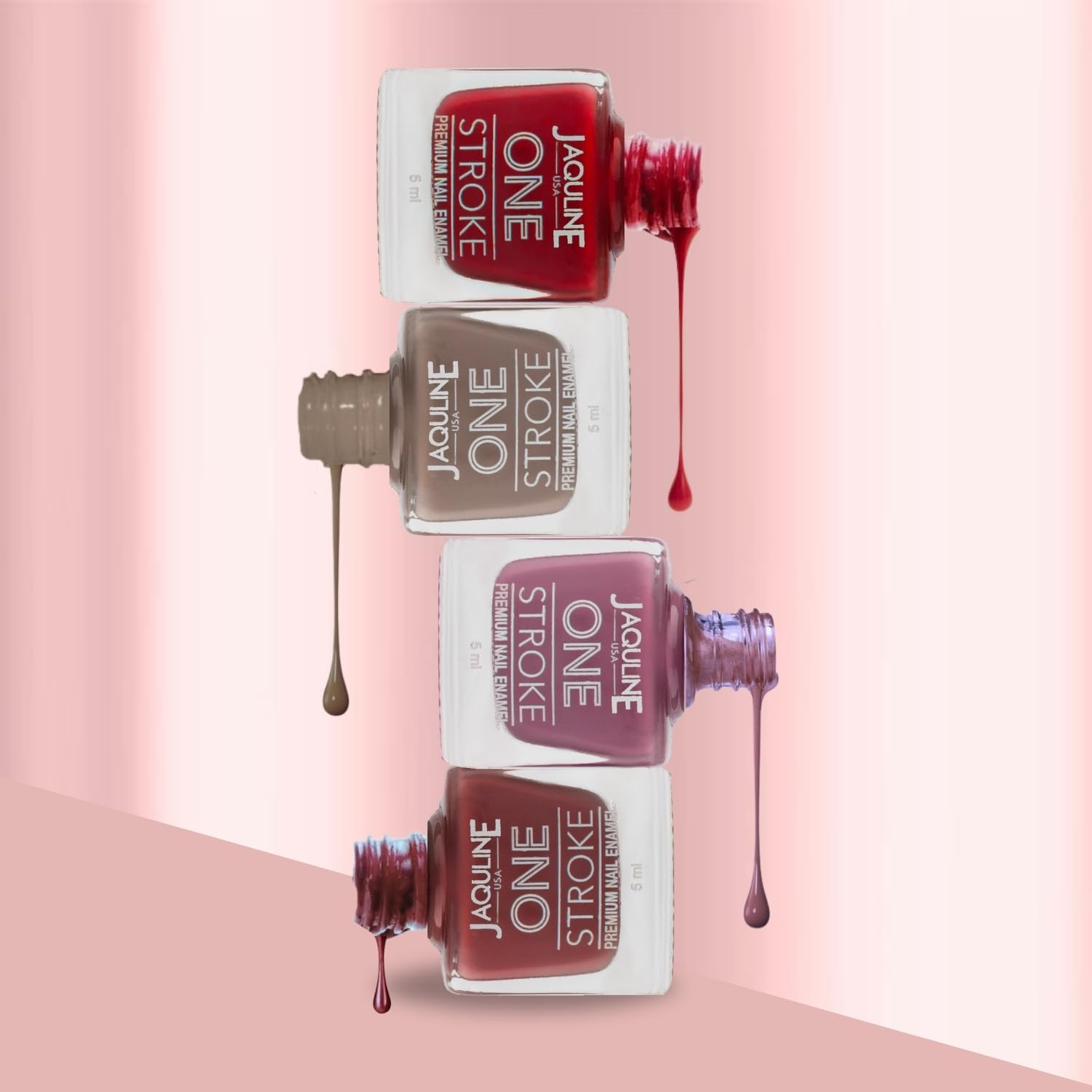 Our highly pigmented Jaquline USA One Stroke nail paints offer exceptional coverage, eliminating the need for multiple coats. Enjoy vibrant, glossy color with just one application.