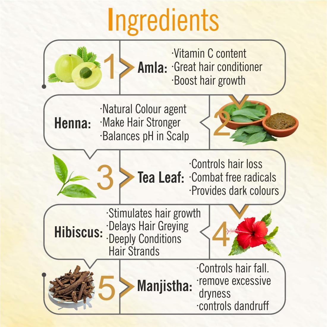 100% natural, oil based hair colour Easy, mess free application Keeps locks healthy & shiny Free from harmful chemicals Gives natural black colour to the hair