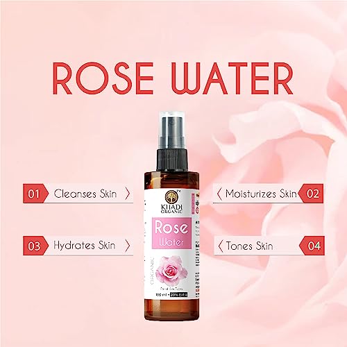 Khadi Organic Rose Water – Rose Water Spray for Face – Ayurvedic Gulab Jal Rose Water For Skin | Pure Rosewater Toner- Kannauj Steam Distilled – Organic Rose Water (Rose Water, 120ML)