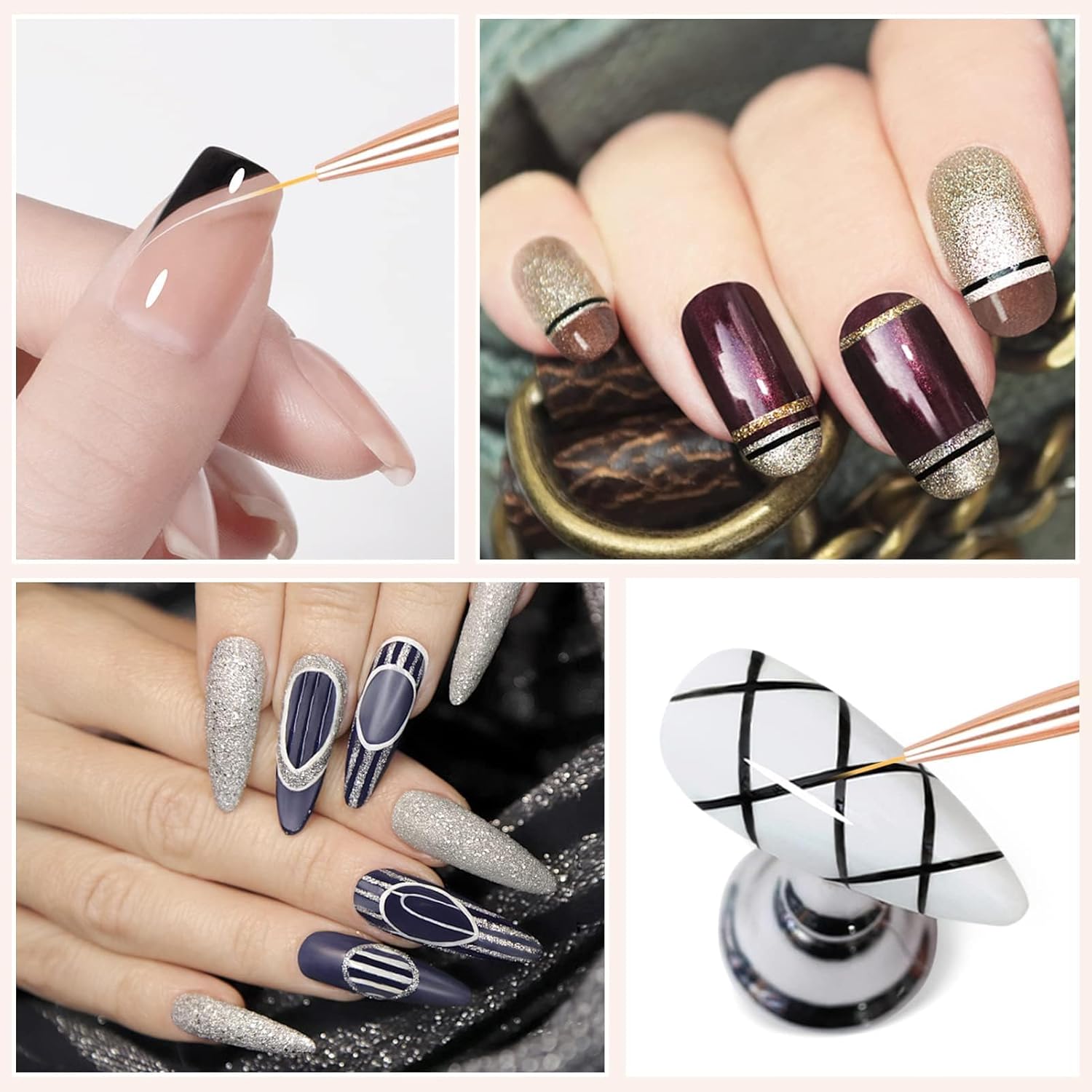 STYLISH AND DELICATE SET : 3Pcs liner nail pens. The brush body is made of rose gold alloy/ABS and looks super elegant. In addition, a unique indentation on the brush body can make your thumb more comfortable when drawing. 3 sizes brushes and nylon bristles are suitable for many nail polish designs. Lightweight and durable enough for daily use.