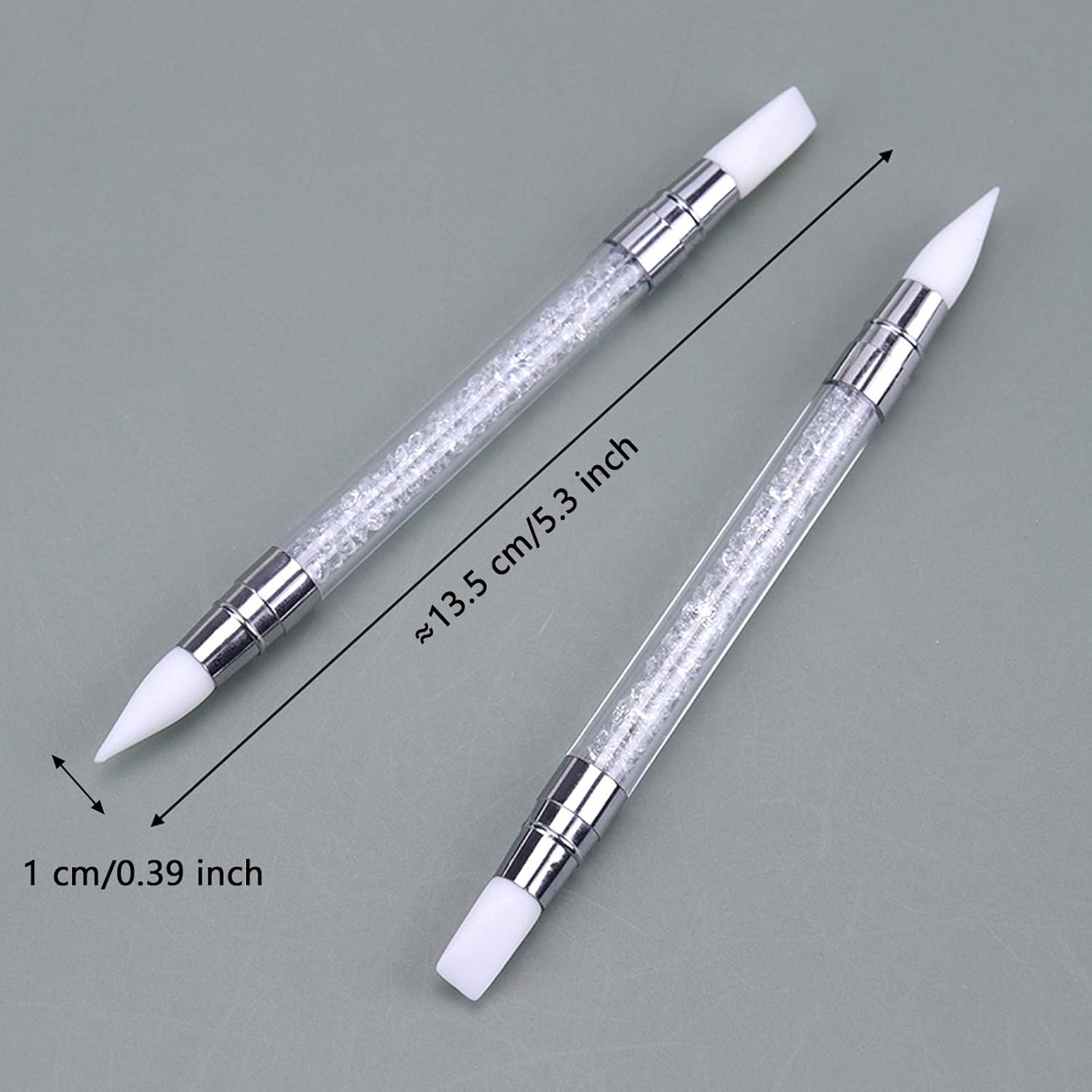 KIRA 5Pcs Dual-Side Nail Art Acrylic Pen Brushes, Silicone Nail Art Brush Rhinestone Nail Polish Carving Pens Silicone Head Acrylic Handle Nail Art Brushes Rubber Tip Nail Brush (Assorted)