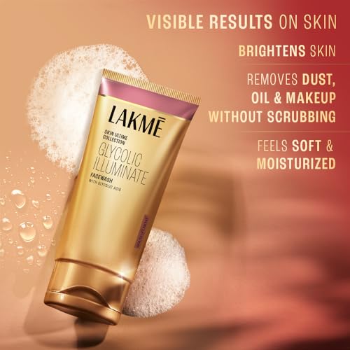 Lakme Glycolic Illuminate Facewash with Glycolic Acid | Glycolic Acid Face Wash for Exfoliating Dull Skin | Gentle Cleanser for Glowing Skin 100gm