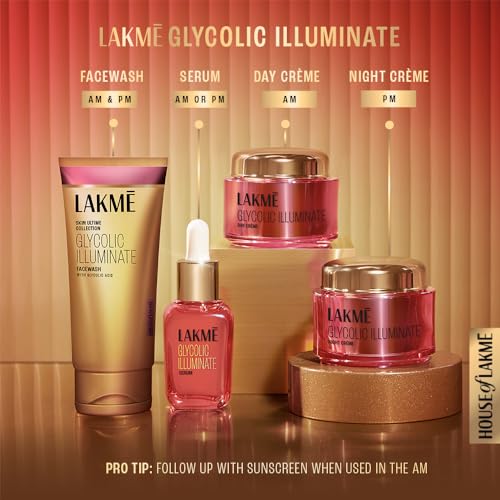 Introducing the Lakmé Glycolic Illuminate Face Wash from the Skin Ultime Collection, your secret to achieving a bright and glowing complexion. This luxurious facewash offers a unique creamy texture that’s powered by the exfoliating properties of glycolic acid and makes you feel like a fashionista with every wash. This face wash provides gentle exfoliation and imparts skin-softening properties, is dermatologically tested and is suitable for individuals with normal, dry, oily, or combination skin types. No matter your skin type, it promises to deliver a bright, illuminating sheen. Whether you’re preparing for the day ahead or unwinding in the evening, this face wash is the perfect first step to your daily skincare routine. Experience the magic of glycolic acid, known to help skin renewal and helps boosts skin cell turnover. It works to reduce pigmentation, revealing a brighter and more even complexion. In just 14 days, you’ll notice a remarkable 80% increase in your skin’s brighteness, giving you a show-stopping sheen that’s hard to ignore. Discover the potential of brighter skin with the Lakmé Glycolic Illuminate Face Wash. It effortlessly removes dust, oil, and makeup without the need for harsh scrubbing, ensuring a gentle and refreshing experience for your skin. Get ready to shine in the spotlight with its gentle exfoliation, thorough cleansing, and suitability for all skin types. Enhance your daily skincare routine and unveil your natural glow today!