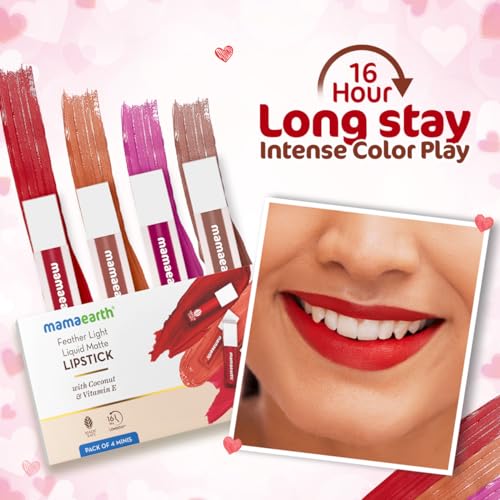 Mamaearth Feather Light Liquid Matte Lipstick pack of 4 minis | Valentine’s Day Gift Pack – (4 X 1.2 ml)