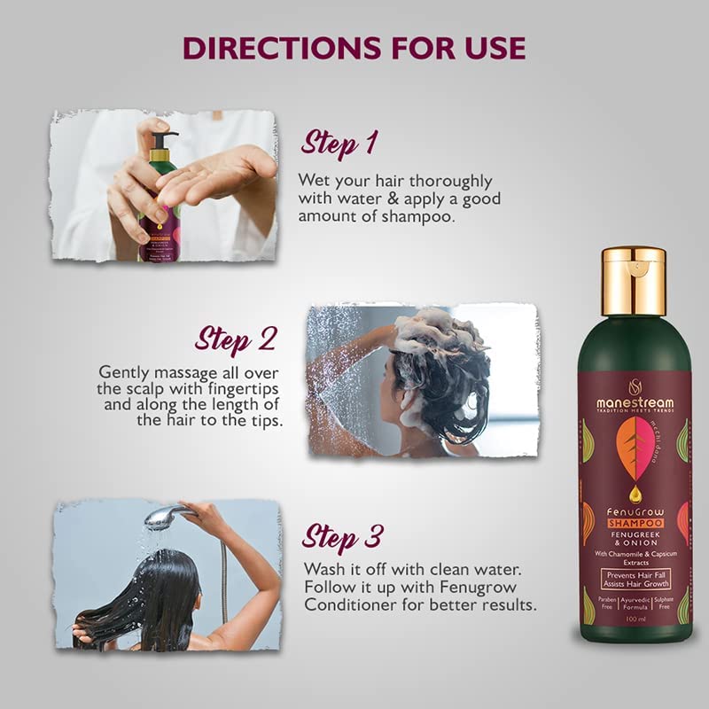 𝗛𝗘𝗥𝗕-𝗜𝗡𝗙𝗨𝗦𝗘𝗗 𝗙𝗢𝗥𝗠𝗨𝗟𝗔 :- Ayurveda-based Herbs-infused formula with the goodness of Fenugreek, Onion, Chamomile & Capsicum Extracts.