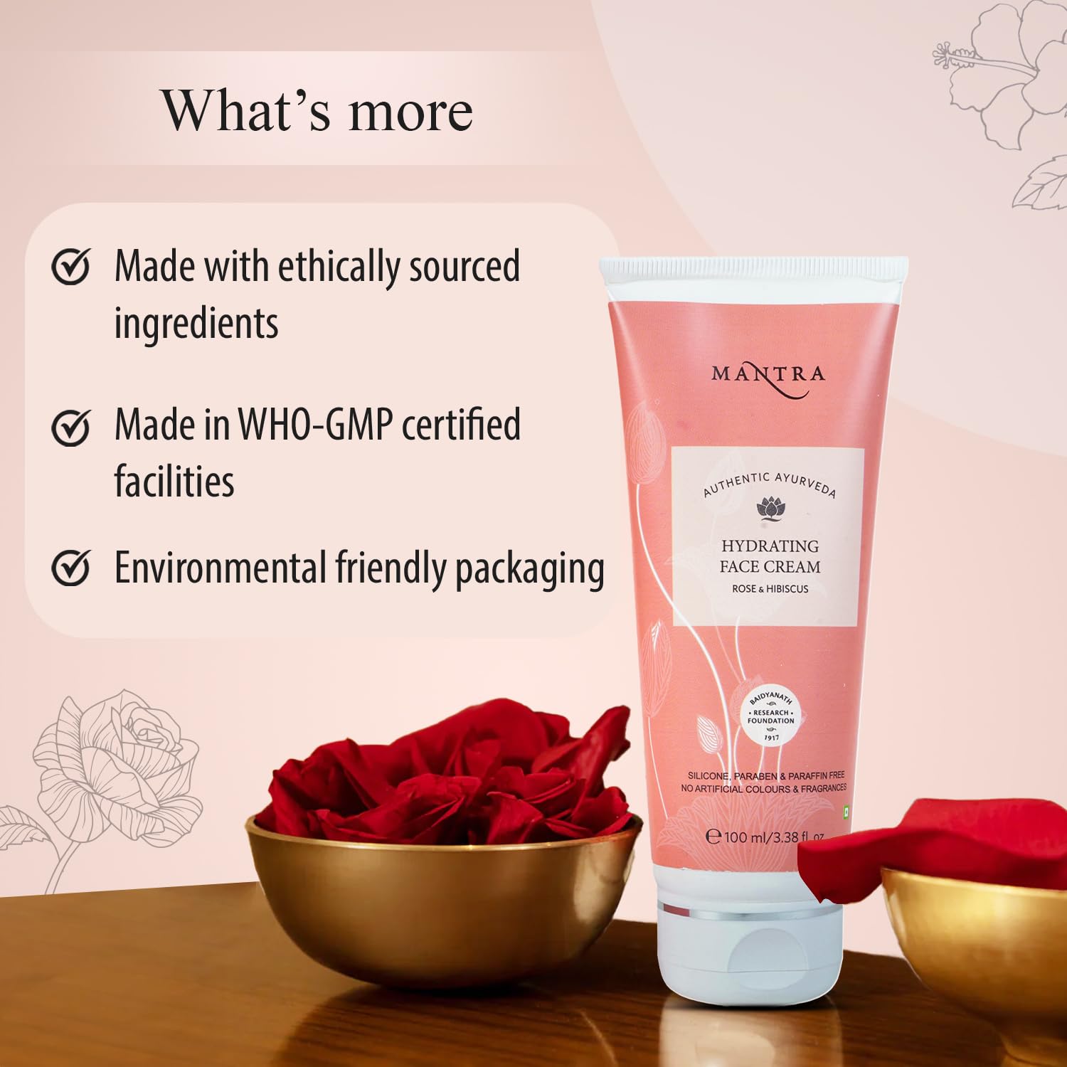 Mantra Herbal Hydrating Face Cream Rose & Hibiscus with Light-Creamy Texture – 100 ml | Repair Skin UV Rays & Brightens the Skin | Fast Absorbing & Suitable for Normal to Dry Skin