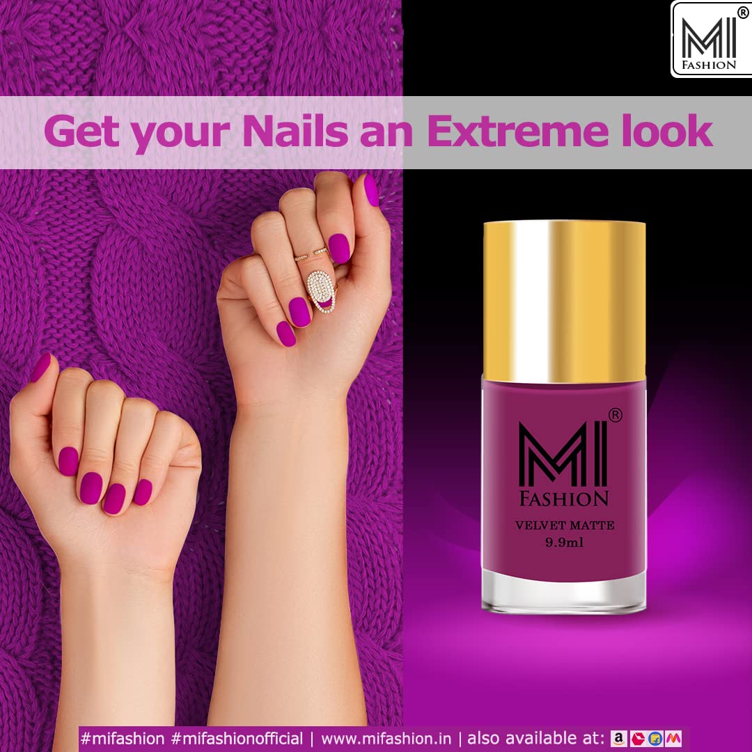 Great nails, don’t happen by chance they happen by MI Fashion long-lasting, matte wear nail polish, why and how, right? So, let us explain you, we only deal with cruelty-free and premium products at affordable prices. With wide brush range which helps you to apply it easily in less time with quality product, and vegan, we assure you that once you try on those trending matte nail paints, you’ll taste the fashion on a brand new level MI Fashion, which is made in India, everyone should prefer Indian cosmetics right? So, why not? Now when it’s cost-efficient and a premium quality product. Be vegan, Be MI with MI Fashion, and apply these beautiful shades on tip of your finger to look more glamorous.