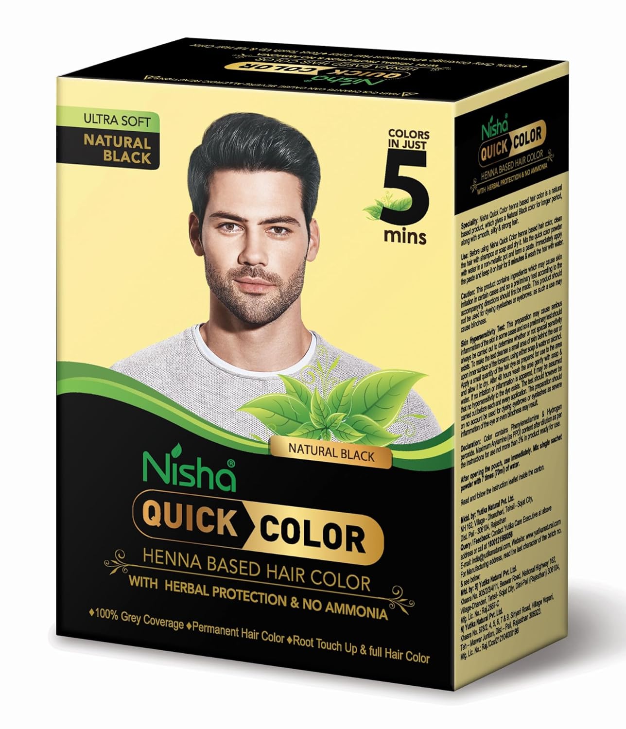 ✅ Package Contains: 6 Sachets of Nisha Quick Color Henna Based Hair Color Natural Black (10gm Each sachet)