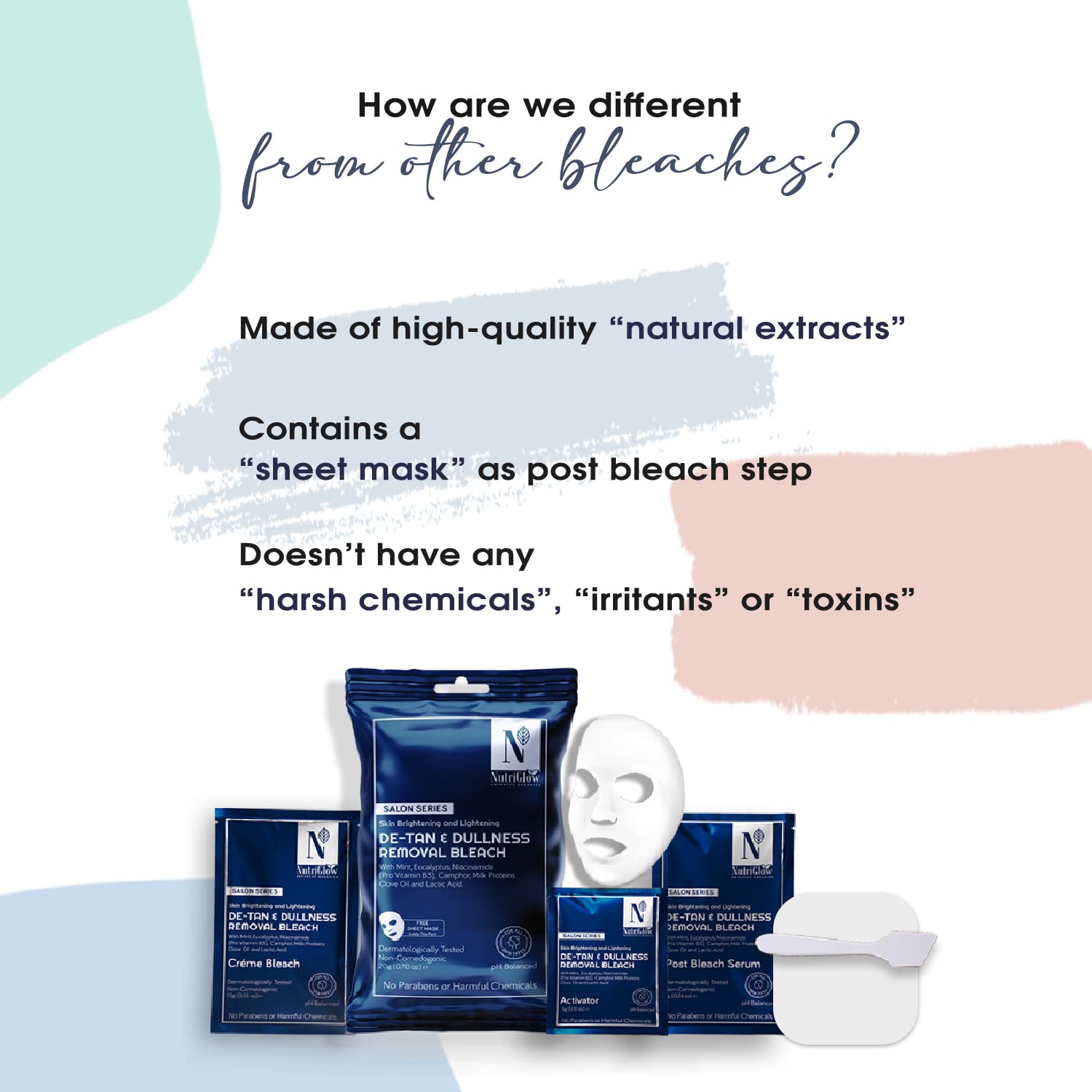 NutriGlow Advanced Organics De-Tan & Dullness Removal Bleach, 6-in-1 Skin Brightening Cream, For All Skin Types, Herbal Bleach for Face & Body, 20g