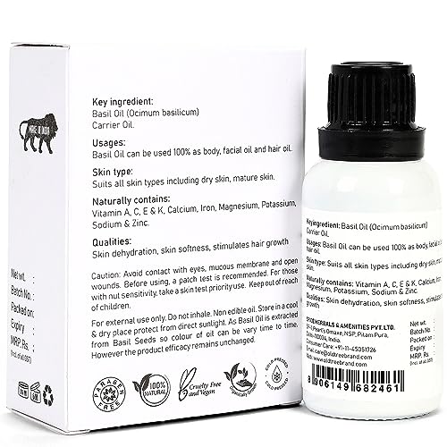 Versatile Skincare: With its rich antioxidant properties and anti-inflammatory benefits, this basil oil effectively rejuvenates and nourishes the skin, helping to soothe irritations, reduce blemishes, and promote a healthy, radiant complexion.