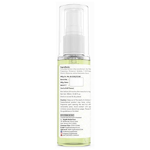 Orgello Herbal Cucumber Toner Mist Spray for Face Pore Tightening Purifying and Glowing Skin Alcohol Free Toner 100 ml