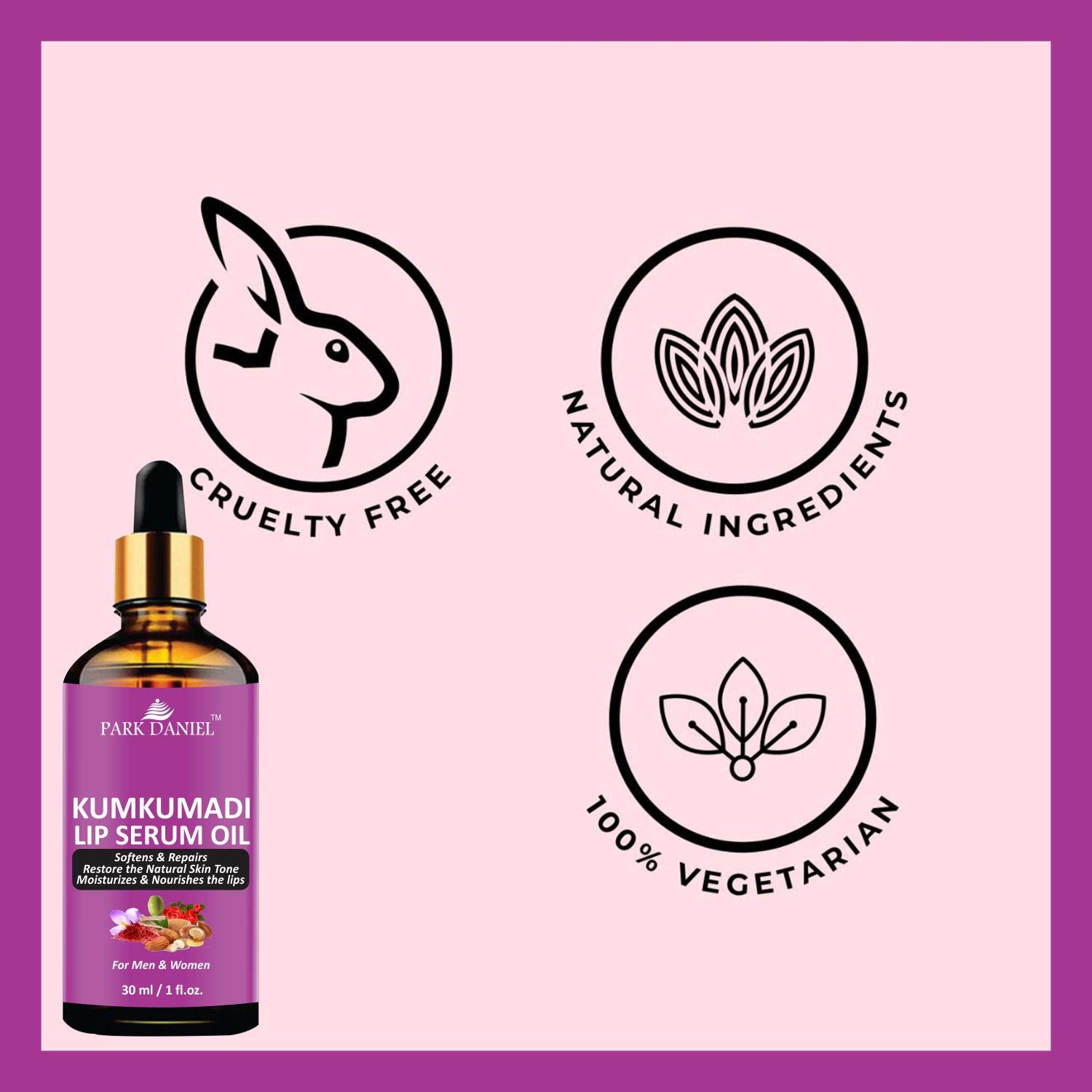 Park DanielKumkumadi Lip Serum effectively exfoliates dead lip skin, brightens dark lips, restores natural lip color, makes damaged and dead lips soft and kissable, lightens lip stains, heals dry and chapped lips, hydrates and moisturizes lips.It is scientifically blended with shea butter, beeswax and vitamin-E which boosts collagen, treats wrinkle lips, and repairs damaged lips.It relieves chapping and dryness, as well as preventing it from worsening. Creating a barrier between your skin and environment, it stops moisture from escaping, keeping them soft.You should always use a lip Serum daily, because it Protects your lips from sun damage and keep them soft, smooth and healthy, it’s the skincare tool you can carry with you everywhere. No side effects, paraben and sulphate free. completely safe for daily use.