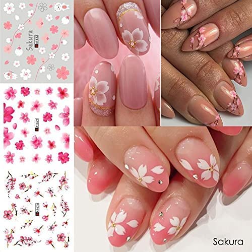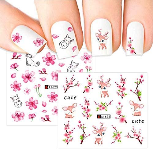 Qul.W 12 Sheets Peach Blossom Nail Art Stickers Water Transfer Nail Decals for Women Nail Art Supplies Color Floral Designs Foil Nail Stickers for Acrylic Nails