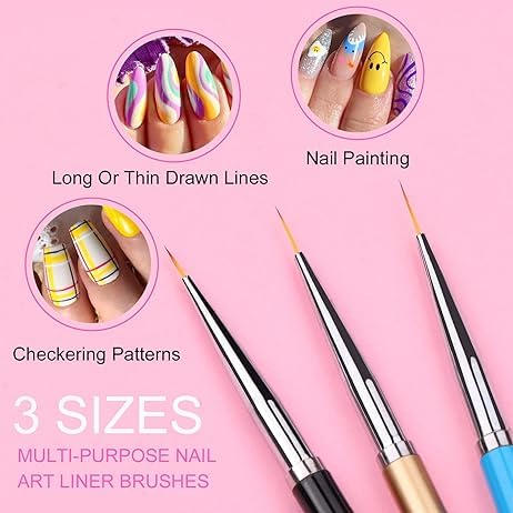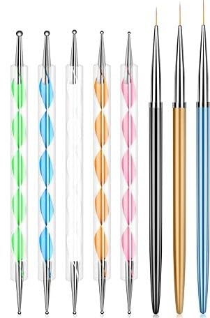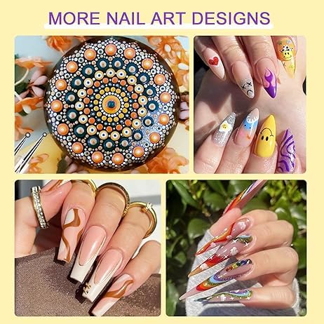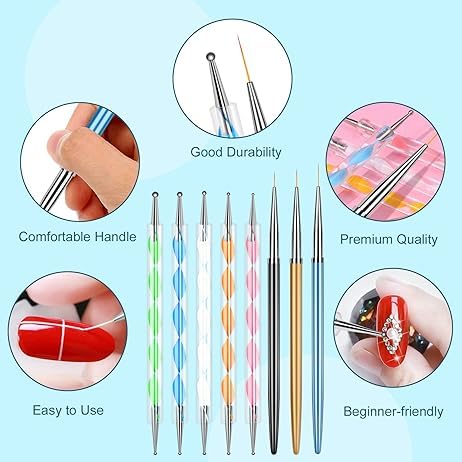 MULTIFUNCTIONAL: nail dotting pen has a double-ended design, making it available in different sizes to show more beautiful dot patterns in different styles of nail art. And 3 different sizes of nail art liner brushes give you more possibilities, such as painting, blooming, marbling, blending, checkering, fine lines, etc. Used our nail art tools, help you DIY nails, and you can enjoy nail art designs.