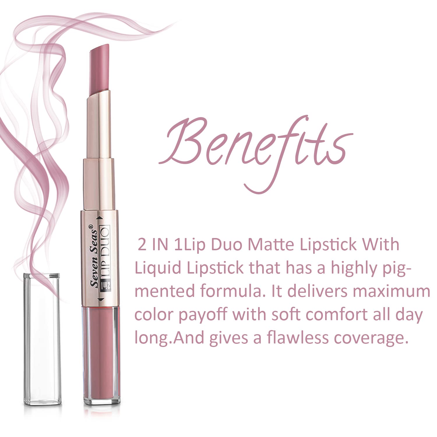 2 In 1 Lipsticks Two look In One Lipstick Matte Lip is a matte finish liquid lipstick that glides on in one smooth application, with no need for a second coat. The light as air texture provides you with comfortable wear for hours, that does not cake, flake or dry out, ensuring long lasting colour all day