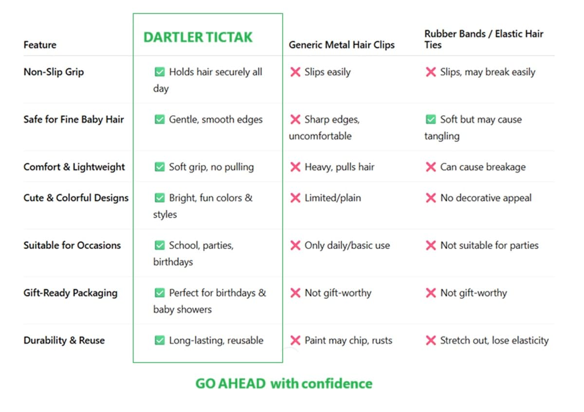 Founded with love and care, Dartler specializes in kids’ fashion accessories that combine comfort, durability, and charm. From vibrant tic tac hair clips to everyday essentials, each product is designed with your little kids joy and fun.