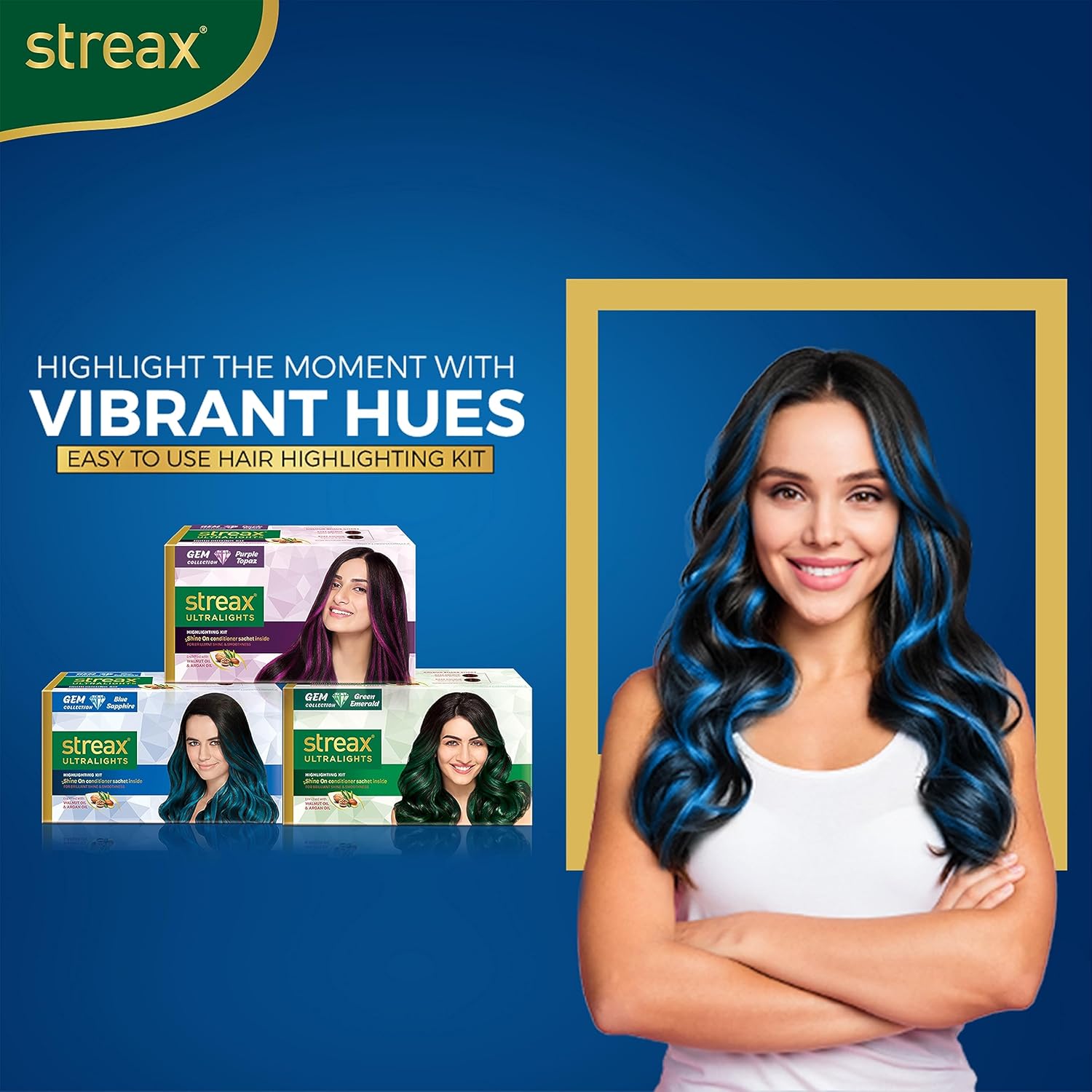Generic Name ‏ : ‎ Streax Ultralights Hair Colour Highlight Kit |Green Hair Colour, Gem Collection – Green Emerald – Pack of 2 I Enriched with Walnut & Argan Oil I Hair Colour for Women | Rich, vibrant, Easy to use, DIY Application