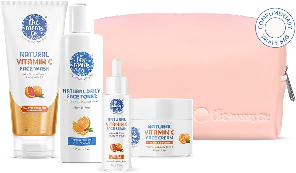 Protect, repair and replenish your skin with our Natural Vitamin C powered skincare regime. The regime has 4 natural products that prevent skin damage, neutralize free radicals, boost collagen production and deeply moisturize the skin, leaving it brighter, softer and smoother. Cleanse your skin with Natural Vitamin C Face Wash that has Orange peels that gently exfoliate the skin. Follow it up with our alcohol-free Natural Daily Face Toner that gives the skin a boost of hydration. Our Natural Vitamin C Face Serum is enriched with Vitamin C and Ferulic Acid that neutralize free radicals and improve uneven skin tone. Seal in the moisture with Natural Vitamin C Face Cream that has Vitamin C, Sqaulane and Ferulic Acid.